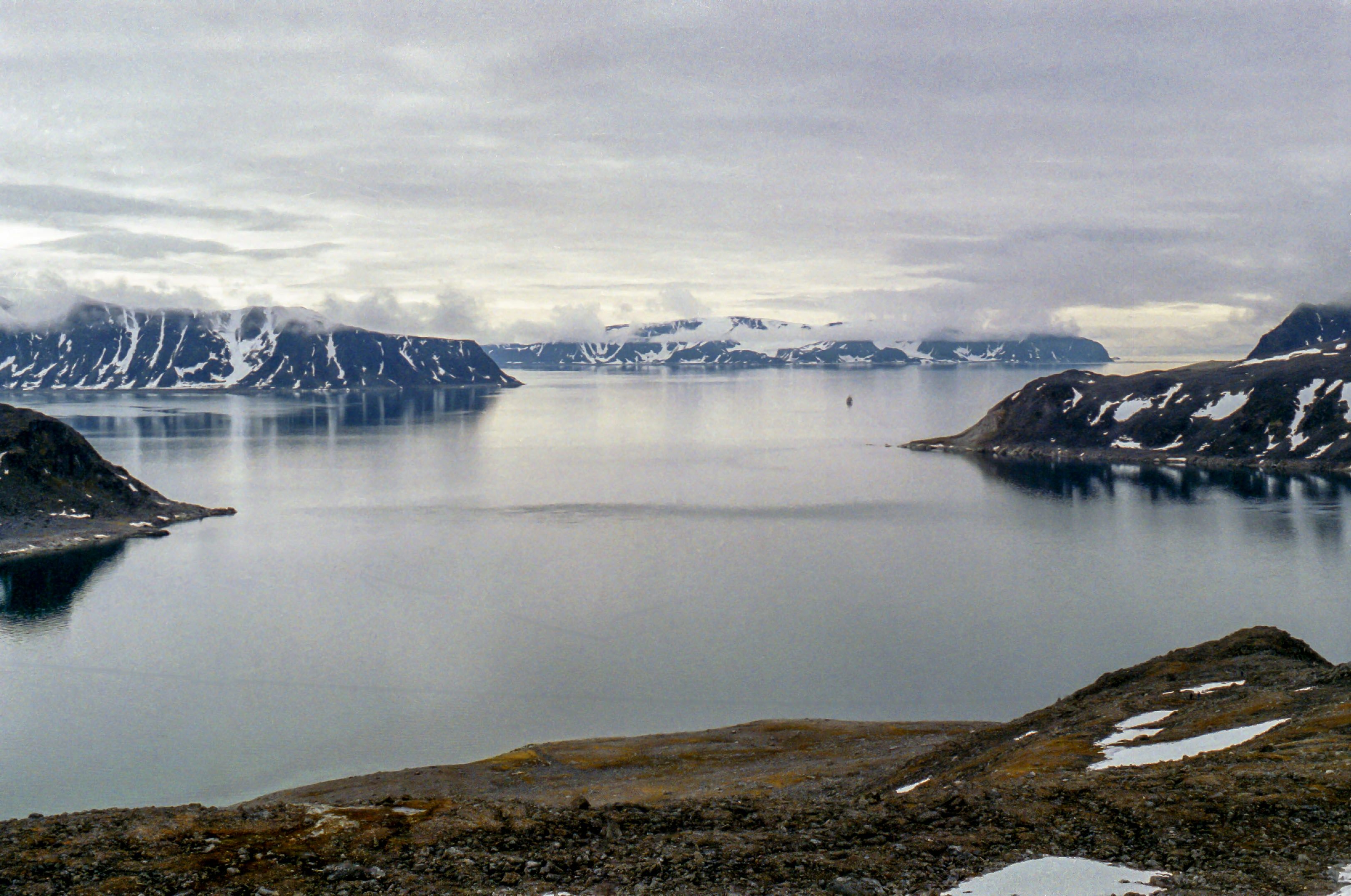 „Wie eine blaugrüne Ader schneidet das Meer zwischen Fels und Eis ein. Grosse Gletscher mit weissen und eisblauen gähnenden Spalten senken sich zur blaugrünen Fläche herab. Schwarzblaue Berge türmen sich zwischen den Gletschern höher und höher empor und verschwinden weit landeinwärts in der Nebelkappe, die sich über die Gipfel wälzt.“